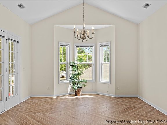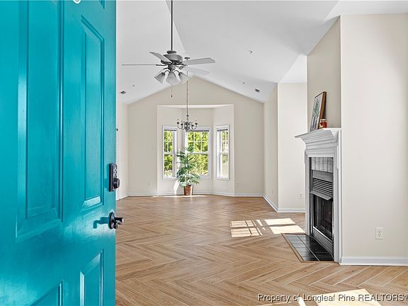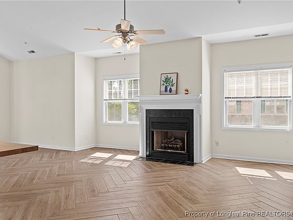 Fayetteville living reaches new heights in this airy and open two-bedroom condo with two full bathrooms and the added bonus of NO UPSTAIRS neighbors. The stylish kitchen boasts top-of-the-line-white matte matching CAFE appliances, cutting board finish countertops updated cabinets, and tile flooring. The primary suite offers a spa-like experience with a jetted garden tub, stand-up shower, and updated double sinks with a chic gold finish. Cathedral ceilings enhance the bright and spacious open-concept layout allowing the herringbone ceramic tile pour throughout the condo, (minus the bathrooms). This desirable unit also includes a private 1 car garage conveniently located underneath the unit. ELEVATOR for easier access to the condo. Benefit from the ongoing building painting project by the HOA, for which the assessment has already been paid!! You are going to love the location, moments away to downtown Fayetteville, very close to Cape Fear Hospital, and easy access to Fort Bragg.
