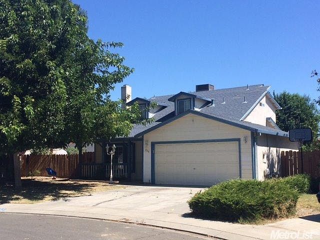 Welcome home. Located on a quite court. Nice two story with a master bedroom and full bath down stairs. Vaulted ceilings with skylights. Open layout. The yard has a play house and lots of space to add a pool. Have big toys, you will like the yard access for storage. Nice two story with a master and full bath down stairs. Behind Home Depot, close to HWY 99, shopping and wonderful schools. Just maybe the perfect fit for you.