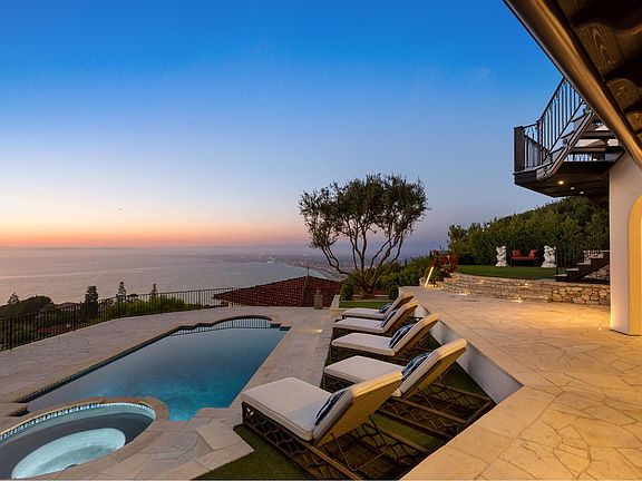 Turnkey quintessential Mediterranean Villa offering explosive ocean views, unparalleled luxury & exquisite finishes. Custom built w/ immaculate design, the main home entails 2 elevators, 5 bdrms w/ ensuite bthrms & walk-in closets, addt'l 2 bthrms, great room, dining room, bar, theatre, office, & study. The luminous kitchen w/ top of the line appliances, bespoke cabinetry & ocean views graciously flows into the dining area & continues on to the great room. The exceptional outdoor living space w/unrivaled views has every amenity one could desire. Several patios, fully equipped outdoor kitchen & dining area w/ heating, TV, laundry room, pool, spa & outdoor shower. Beautiful guest house w/ kitchen, 1 bdrm, 1 bthrm & doors of glass. Secured & operated by Savant & Vantage systems personalized to your lifestyle providing unparalleled convenience of controlling lighting, shades, climate, security, pool, spa & entertainment. Generator, LED lighting, filtered water throughout the entire home.