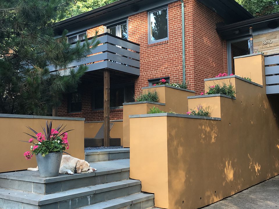 Architect owned and designed total renovation completed in 2008 which included new slate-look recycled rubber roof, new slate walks, steps, and deck off dining room, and new pea gravel terrace off Family Room; all new insulated glass windows and doors with natural Ponderosa pine finish at interior/painted wood exterior, with new exterior Brazilian ipe wood decks off Living Room, Master Bedroom, and Upper Level Bedrooms; renovation includes new solid core maple veneer doors, Baldwin lever hardware & hinges in brushed nickel, new painted contemporary wood base and door frame trim throughout, new maple hardwood floors throughout the 2 upper levels, new carpet tile in lower levels, new Pennsylvania bluestone slate fireplace surround/mantle; renovation includes new open plan Main Level with Entry Hall, LR, DR, Kitchen with large solid surface island and pendant lights, specialty lighting, high end appliances, and new vaulted ceiling in LR with continuous LED cove lighting. Bathrooms are fully renovated with new flooring, (slate tile in Main Bath, California glass mosaic tile in the Master Bath, ceramic tile in Lower Bath), light fixtures, vanities, fixtures, and accessories. Dimmer switches throughout are featured for lighting control. New heat pump in 2008; new Washer/Dryer (in 2017); new exterior landscaping with new sod (in 2015), and new uplighting (in 2017); lower level features the 4th Bedroom as an au-pair suite with a full second kitchen with upgraded appliances, separate door to exterior, or use as a Rec Room. Original copper gutters and downspouts were preserved and restored as part of the renovation.
