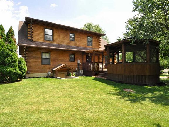 *Multiple offers* Highest and Best by 6pm 8/7. Gorgeous log home on 10.88 acres. Beautiful open ceilings with huge log beams giving this home such a unique feel. Many updates throughout including new furnace, new carpet in most rooms, updated appliances, granite counters, and exterior logs have been completely stripped and restained. Beautiful kitchen, open dining room, and great room is light & bright with an exposed ceiling showcasing the massive logs along with a gas burning stove. 1st floor also has two bedrooms and a spacious full bath. Upstairs is an open loft overlooking the great room & exposed log beams. Full bath and a huge bedroom that could be used as a master suite or bonus room. Fin. basement w/4th bedroom, 3 car garage, large deck, and a gazebo.