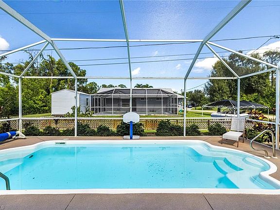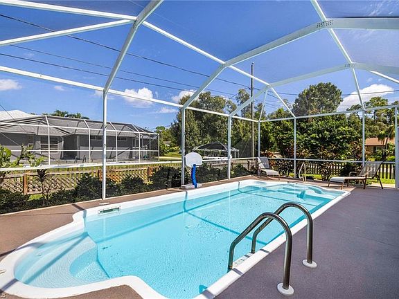 ASSUMABLE FLOOD INSURANCE JUST OVER $700/YEAR! NEVER ANY FLOOD OR HURRICANE DAMAGE! FULL HOME GENERATOR AND BURIED PROPANE TANK INCLUDED! Take advantage of this major price decrease on one of San Carlos Park’s lowest-priced pool homes! This well-maintained, one-owner 3-bedroom, 2-bathroom home with a 2-car garage sits on an oversized corner lot and offers classic Florida living, upgrades, and move-in ready comfort. Step outside to your large heated pool (heater just 1 year old), screened lanai with covered seating, and bar/serving area from the kitchen, all overlooking a fully fenced yard with plenty of room for a pool, play area, or outdoor entertaining. Concrete block construction, freshly painted exterior, updated irrigation, shutters on every window, and an exterior security system provide durability, safety, and peace of mind. Inside, the split floor plan with vaulted ceilings and tile throughout the main living areas creates a bright, open, and inviting space. The kitchen features Corian countertops, wood cabinetry, newer appliances, and a large walk-in pantry, flowing seamlessly into the living areas with sliders opening to the pool. The master suite includes vaulted ceilings, a walk-in closet, and an upgraded bath. Guest bedrooms are generously sized, one with a Murphy bed, and the guest bathroom has been updated with a tiled tub/shower combo. All furnishings are negotiable! With no HOA, no rental restrictions, and a location just minutes from FGCU, RSW Airport, Gulf Coast Town Center, Coconut Point, Miromar Outlets, I-75, US-41, and the beaches, this home offers unbeatable convenience and lifestyle. A rare find—oversized corner lot, one-owner, well-maintained, MAKE AN OFFER TODAY.