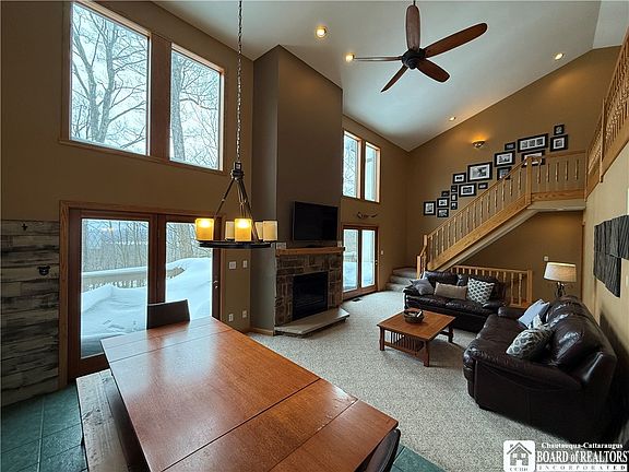 Fabulous 5 bedroom 3 full bath Canterbury condo at PeeknPeak Resort. Located in the most sought out area of the resort, this spacious home has an open concept layout perfect for large gatherings and entertaining a crowd. Floor to ceiling windows allow an abundance of light through out the home. Three levels of living space with a primary ensuite located on the first floor. There’s a spacious and fully equipped eat-in kitchen. Warm up by the fireplace after a day of skiing. Let’s not forget Western New York’s beautiful summer landscape. This unit has two expansive decks for relaxing and enjoying the weather and view. Convenient location to slopes, golf course and all the amenities PeeknPeak has to offer. Make this your full time residence or vacation retreat. HOA includes exterior maintenance, snow and trash removal, cable and internet and use of homeowner’s pool. Currently rented through the Resort’s rental program but could also be managed through VRBO or Airbnb.