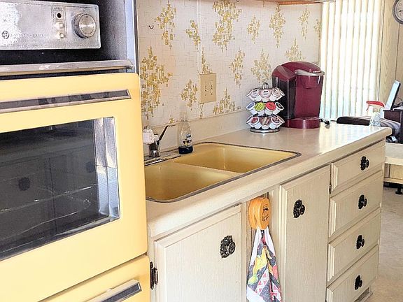 Wow! This is your opportunity to live in Fountain of the Sun and enjoy a gated, guarded community offering a golf course, dining, workout facility, pool, spa both heated, bocce ball, dog park, pickleball, activity center and so much more. This cute cul-de-sac home needs some love but is loaded with potential. 2 bedrooms, den, 2 bathrooms, enclosed patio not included in Sq footage listed, covered patio two sheds and a huge lot! Furniture and contents stay. A great value in this premier 55+ community.