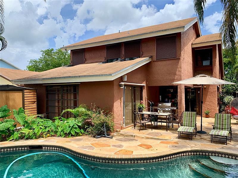 Large home in the community -original from the developer-. Beautiful and spacious, lots of light. Ideal for entertaining, private backyard with pool, extended family room, new kitchen,remodeled bathrooms, high ceilings in living area, plenty of space for a large family or the ones who enjoy living surrounded by nature, parks and great schools. The original model was extended through the garage and open porch to enclose and convert them in inside living spaces. Huge bedroom first floor, besides other two bedrooms, upstairs an open den plenty of space!!The house can be rented furnished.