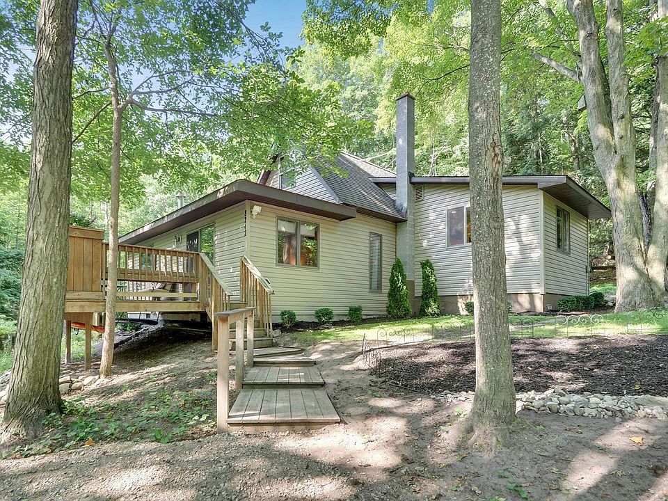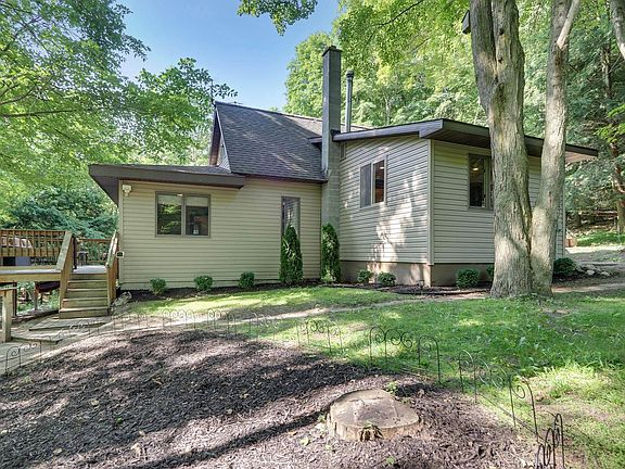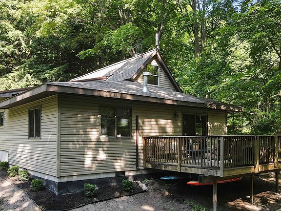 Beautiful park-like setting with 2+ acres surrounded by hardwoods and a small creek running through. Enjoy the peaceful sounds of nature from the large deck out back. So many nice features can be found in this updated 2 bedroom home with over 1,200 sq ft. Extra large kitchen is a cook’s dream with tons of cabinets for storage and lots of counterspace. Cozy stone fireplace in the living room. Rustic wood beams and a spacious loft area perfect for home office, exercise room or extra sleeping quarters. Partial basement for extra storage space. First floor laundry for convenience. Peace and serenity can be yours if you hurry!