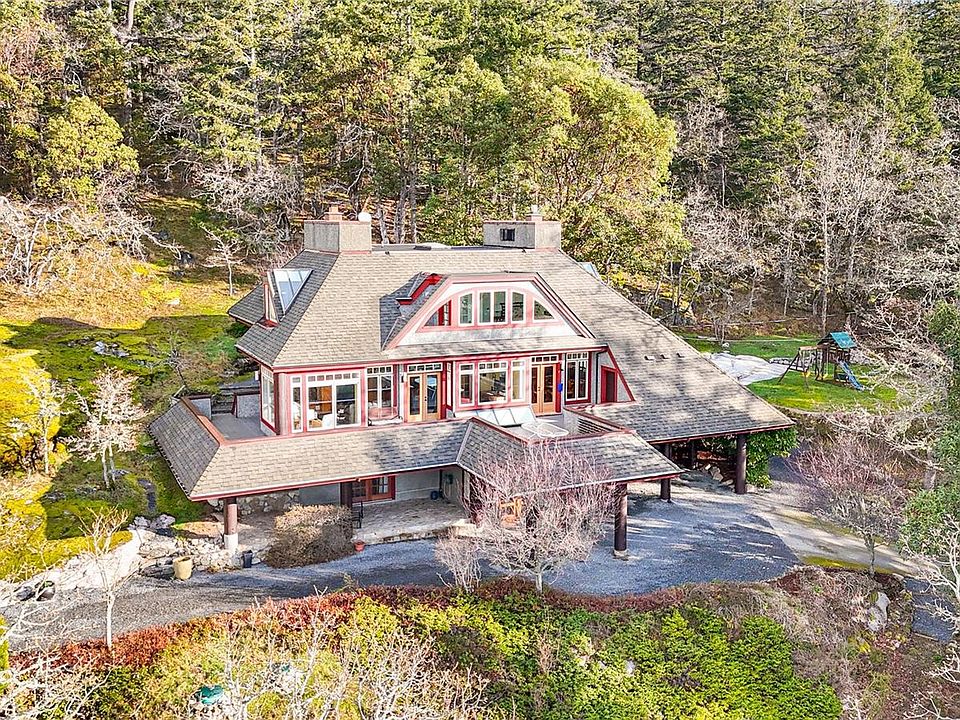 A private and and quiet view property in Central Saanich . Sitting on 10 Acres and backing on to Dean Park this is one of the highest elevation homes on the peninsula. With full Southern exposure boasting views as far as the Olympic Mountain Range, the Saanich Inlet and Cordova bay. Entertain with ease in the beautiful modern custom kitchen and enjoy a summer evening with family and friends on the large wrap around deck. This home offers 4 bedrooms, 4 bathrooms, a Den, office and plenty of dining and living space. Outside there is more than ample parking for cars, Boat, RV or Trailer. A large detached 2090sqft Garage/Coach house allows storage for up to 6 cars in heated comfort with plenty of space for motorbikes or other things. This garage could also be converted in to additional living space. A car collector or Hobbyists dream offering great value in a desirable location. Come and see the views, space, privacy and nature in this truly unique property.