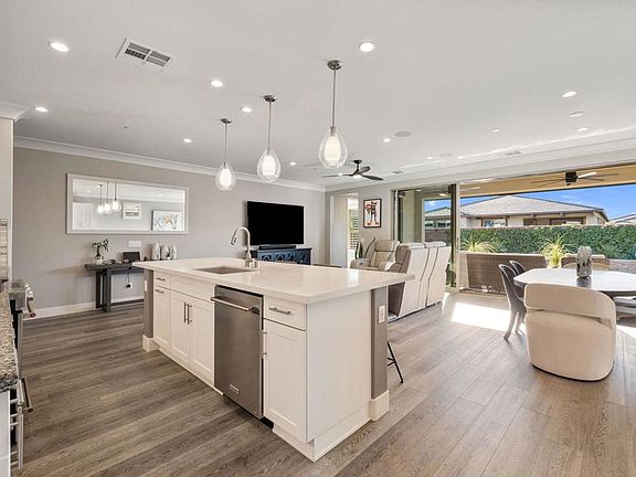 Welcome to this stunning Affirm model in the sought-after Trilogy at The Polo Club -- better than new and loaded with over $250,000 in upgrades! This immaculate home features 2 bedrooms plus a spacious enclosed den with custom built-ins, ideal as a bonus room, office, or potential 3rd bedroom. Step inside to find designer finishes and fixtures throughout, showcasing true pride of ownership. The open-concept layout flows seamlessly to the backyard retreat -- a true masterpiece. Enjoy a Pebble Tec pool with tanning shelf, spa, three tranquil water features, a firepit, and a full outdoor kitchen complete with Blaze 5-burner grill, griddle, and power burner. The covered patio features motorized screens, creating an enclosed extension of the living space when the sliding doors are open. The extended garage includes cabinetry, epoxy flooring, and a mini-split system. Energy-efficient solar panels and IID electric keep costs low, and low HOA dues make this home even more appealing. Luxury, comfort, and functionality -- this home truly has it all!