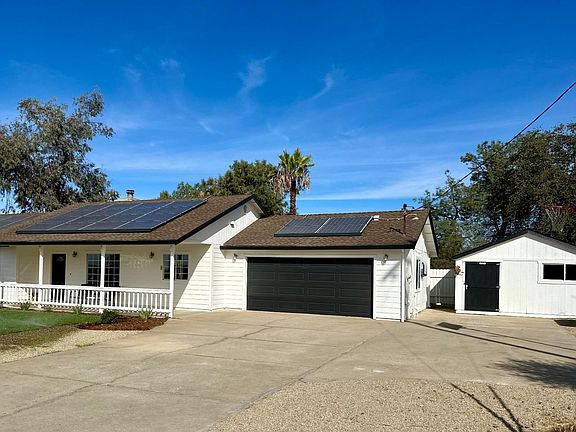 Welcome home to this spacious home on 1.03 acres in Rancho Calaveras,the Foothill Community of Valley Springs.Fenced with an attached oversized,two-car garage,one workshop measuring 16x20 and an additional storage shed measuring 12x12,think; office,guest room,kids play room,or even an art studio!Well-treed,usable acreage with panoramic landscape views & an oversized chicken coop,enough room for horses and a vegetable garden,if desired. The covered front porch and spacious back patio, which is partially covered,is perfect for having your morning coffee or watching children play.In the back,you will find an in-ground pool that makes those hot summer days enjoyable.The 1,461 sq ft 3 bed/2 bath home was recently upgraded,featuring modern exterior and interior paint,refinished cabinetry,granite countertops,recessed lighting, fan lighting in each room,vinyl plank white oak flooring throughout, upgraded pool, etc.Plus,OWNED solar,a brand new HVAC system & inside laundry room with plenty of space.Vaulted ceilings in the living room provide abundant light through both sliding glass doors that lead out to the pool,making it perfect for entertaining.Easy low maintenance landscaping with irrigation to keep the yard looking fresh.This home is like new and just waiting for its new family!