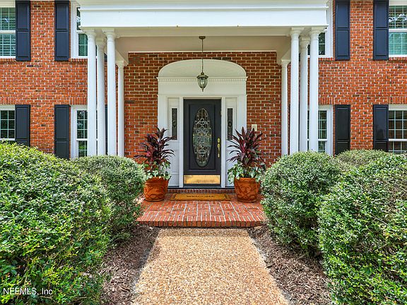 Welcome to your Georgian dream home nestled on a quiet cul-de-sac in the prestigious, Deerwood Country Club. Built by Collins Builders, known for their exceptional craftsmanship, this home embodies quality, elegance. & function. New windows in 2022. As you step inside, you'll be greeted by a gracious foyer that opens to a bright dining room, featuring expansive wall-to-wall windows that offer beautiful views of your private pool, lush landscaping & the tranquil lake beyond. The kitchen boasts an abundance of custom cream cabinetry, a dining nook, light granite island/countertops, SS appliances, pool view and opens to the family room with vaulted ceilings & a fireplace. The first floor also features a spacious bedroom with an ensuite bath, a versatile living room, an office/playroom (off the family room), a convenient half bath & laundry room. Follow the winding staircase to discover the primary bedroom suite, two generous bedrooms & bath. A wonderful place for new memories! +++ Neighborhood amenities: 2, 24-hour manned gates, new playground, pavilion with new kitchen & baths, basketball court, soccer field, optional rv/boat storage, as well as a private entry to Jax Country Day School. Meet even more neighbors when you join Deerwood Country Club. Recently renovated with golf, driving range, tennis, pickleball, fitness, dining and aquatic center available through a variety of membership options.
