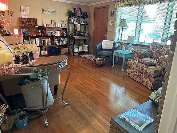 Home is ADA accessible throughout, as it was once an adult family home. Front room with fireplace and large family/dining room with a small wood stove & two sets of beautiful French doors allowing a bountiful amount of natural light to pour in. Large master BR (with privacy deck/French door) with large walk-in closet in addition to the two standard closets. Kitchen with walk in pantry which contains a 2nd sink! Laundry/utility room includes sink (Small doggie door access from this room to a fenced potty yard.) Hardwood floors though out main living/traffic areas.