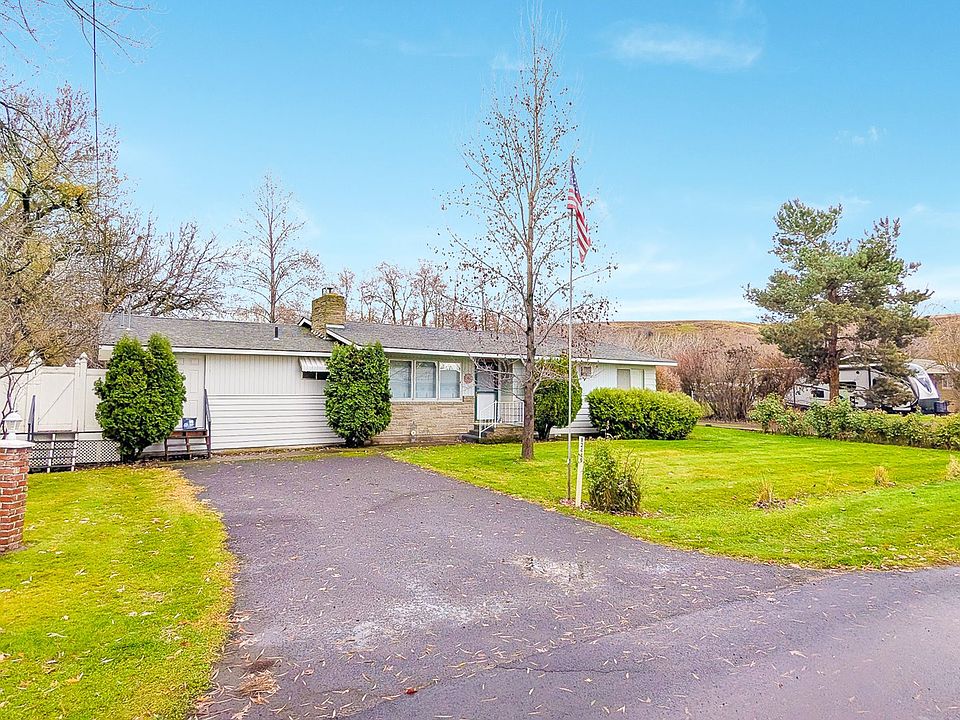 This single-level ranch-style home offers an impressive 5 bedrooms and 5 bathrooms, situated on a generous .58-acre lot. Originally constructed in the 1960s, the property has benefited from substantial additions and updates. The residence is notably ADA accessible throughout, a valuable feature from its prior use as an adult family home. The interior greets you with a welcoming front living room featuring a cozy fireplace, leading to a large, combined family/dining room. This central space is enhanced by a small wood stove and is flooded with natural light thanks to two sets of beautiful French doors. Elegant hardwood floors flow through the main living and high-traffic areas. The expansive primary bedroom offers a private French door opening to a private deck, along with a very large walk-in closet and two additional standard closets. The kitchen includes a walk-in pantry featuring a second utility sink. Practicality is further served by a dedicated laundry/utility room which provides a sink and convenient small dog door access to a fenced "potty yard." Outdoors, the covered back patio overlooks a serene, park-like yard featuring a tranquil stream and mature fruit trees. An irrigation system is in place to water multiple flower baskets, enhancing the lush environment, which also includes two large, raised garden beds. Serious hobbyists or professionals will appreciate the fully insulated 24x30 shop with 10ft ceilings, offering a three-car capacity, along with a convenient 8x12 shed behind the shop and a carport/canopy nearby. Access is easy with two driveways: one in the front and a long side driveway leading directly to the shop. There is abundant space to accommodate multiple trailers and RVs. This property is desirable due to its irrigation rights dating back to the 1870s. The infrastructure includes an enclosed pump house and a timed, in-ground sprinkler system, while the deep domestic well provides wonderful drinking water. Schedule your showing today!