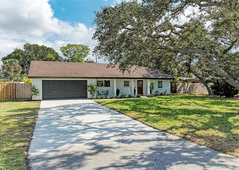 WELCOME TO YOUR DREAM HOME! Step into this beautifully remodeled residence that effortlessly blends modern comforts with timeless charm. As you enter, you are greeted by elevated ceilings adorned with intricate tongue and groove detailing, creating an open and airy atmosphere. The heart of the home is a stunning, completely renovated gourmet kitchen perfect for entertaining. Equipped with solid wood soft-close cabinets, a vast quartz island, and high-quality new appliances. The kitchen also features under and over cabinet lighting, a stylish tile backsplash bar with glass shelves and puck lighting, as well as newly added propane lines and a tank for the gas stove, for all your culinary adventures. Luxury awaits you in the all-new bathrooms, highlighted by exquisite tile floors, modern glass and tile showers, and contemporary plumbing fixtures that enhance your daily routine. The added laundry room, complete with a newer stackable washer and dryer, provides convenience while all new water-resistant, scratch-resistant LVP flooring flows seamlessly throughout the home. For entertainment enthusiasts, experience exceptional audio quality with the newly installed ceiling-mounted Sonos speakers in the living room, perfect for surround sound, while additional exterior speakers on the back porch create a fun outdoor atmosphere. The home is equipped with all new low voltage wiring for Ethernet and coax, ensuring reliable connectivity throughout. Retreat to the spacious master suite, which features a large walk-in closet with built-in wood shelving for all your storage needs. The newly fenced backyard is perfect for gatherings and has ample space for adding an outdoor patio, an addition, a pool, propane fire-pit, with the potential for a second story that could provide breathtaking views of Sarasota Bay. Fresh landscaping and sod, complemented by a recently installed irrigation system in both the front and back yards, enhance the outdoor space. The front yard also showcases vibrant new sod and landscaping, elevating the home's curb appeal. All-new soffits and fascia in a stylish bronze finish complete the exterior look, while a propane and plumbing line has been run for potential outdoor kitchen setups, including a built-in propane grill and/or burners and a sink. Enjoy year-round comfort with a brand-new HVAC unit and ductwork, complemented by a spray foam insulated attic for energy efficiency. The home features new plumbing and electrical wiring, adorned with luxurious fixtures throughout, including ceiling fans, vanity and pendant lights, and adjustable LED recessed lighting. Freshly painted inside and out, along with new baseboards, doors, and hardware, this home is truly move-in ready. Nestled directly across from the beautiful waterfront of Sarasota Bay, this property is just a short walk to stunning views. Conveniently located near Sarasota islands such as St. Armand’s, Longboat Key, Lido Key, and Anna Maria Island, you are only 5 miles from downtown Sarasota. The tranquil neighborhood is at the end of a quiet street and is surrounded by majestic oak trees, perfect for enjoying the beautiful sunsets. Don’t miss the opportunity to make this amazing home yours! Schedule a showing today! One or more photo(s) has been virtually staged.