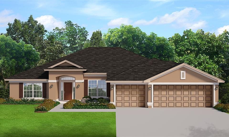 Under Construction. THIS HOME QUALIFIES FOR A LOW INTEREST RATE BUYDOWN WHEN BUYER CLOSES WITH A SELLER APPROVED LENDER AND SIGNS A CONTRACT BY 5PM ON 5/3/2025. THE REDUCED PRICE IS A PROMOTIONAL PRICE EFFECTIVE UNTIL 5PM ON 5/3/2025. Brand new CONCRETE BLOCK home under construction! Estimated completion is approx Aug/Sept/Oct pending any setbacks beyond the builders control. This 4 bedroom/ 3 bath home with 3 car garage is on over 1 acre! Just a short drive to the World Equestrian Center or Rainbow River! Home will have side load garage and stone pkg on front. Many great features in home include wood look TILE IN ALL AREAS except bedrooms & closets, tray ceiling w/crown in master bedroom, tile shower and linen closet in master bath, covered rear porch, granite counter tops, stainless appliance pkg and much more! Very open floor plan great for entertaining! TAEXX pest control system built in home. Builder warranty! Builder helps with closing costs when Buyer pays cash or closes with a Seller approved lender. Pictures are of similar home for illustration purposes only. Colors and features will vary. Prices/Promotions subject to change without notice!