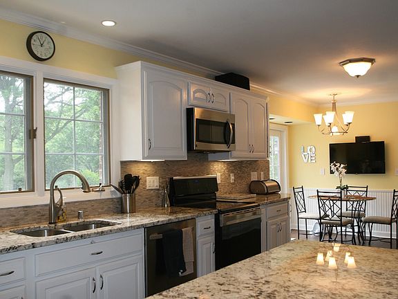 SPECTACULAR ONE OF A KIND FAMILY COLONIAL IN PRESTIGIOUS OVERLOOK FARMS situated on ¾ acre boasting 6.0 heated garages with oversized doors & drain, stunning chef’s kitchen with all the amenities-granite counter, sandstone back splash, ceramic tile hardwood plank, new appliances & refinished cabinets, plus sitting area w/second NFP and first floor office & dual entry. Light radiates through wall to wall windows in expansive family room complete BIC & wet bar, NFP and 80” T.V. with surround sound. Comfortable formal LR/DR combination. Pleasing colors throughout home. Master suite features walk-in closet & MBA boasting beautiful marble floor, granite counter & refinished cabinets. Finished lower level. Generous size patio overlooks spacious flat yard with mature landscaping and sprinkler system w/digital controller. Newer roof, siding, windows, gutters, lighting, flooring & more.