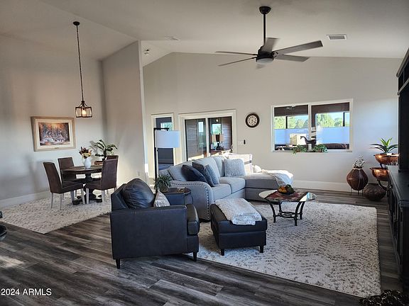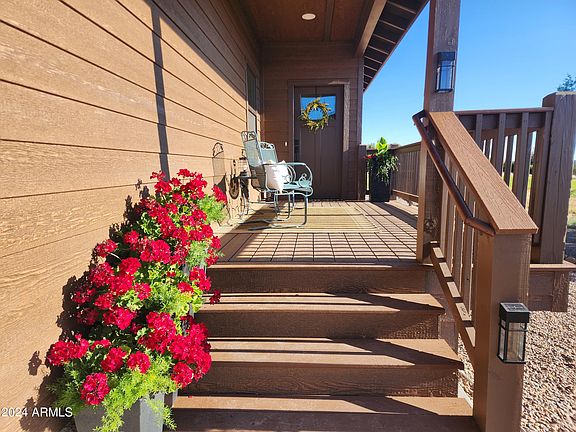 Built in 2022, this beautiful home is located in the very popular 55+ gated community of White Mountain Lake Vistas. Open concept home! Many upgrades & designer features. The large kitchen features white 42'' soft close cabinets, upgraded granite w/ waterfall edge. The island is 8'2'' long & 4'5'' wide that easily seats 4+ people & upgraded stainless steel appliances. Large Great Room & dining area. Primary Suite is impressive w/ custom bath & large closet. This home features a 19' x 12' fully insulated Arizona Rm, enjoy the look of a freestanding wood stove w/ convenience of propane. VIEWS! Overlooking Hole 6 golf course green & sunrises. HUGE 3 car garage! Comes with DIRECT USE & ACCESS to ALL Juniper Ridge Resort's GREAT AMENITIES & EVENTS. PLUS- PRIVATE WHITE MTN LAKE membership.