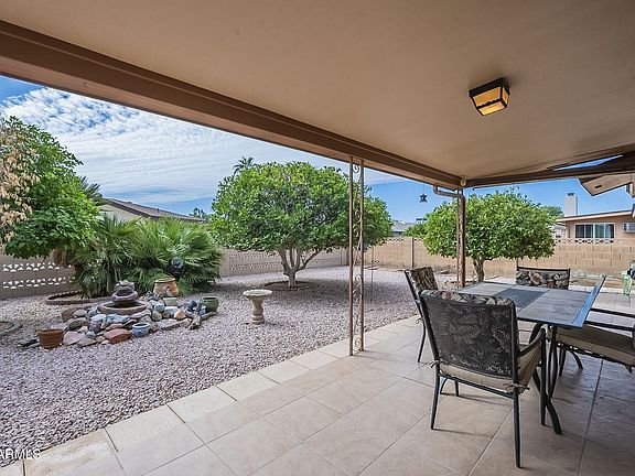 Looking for the perfect lock-and-leave home in one of the East Valley's favorite active adult communities? You've just found it! This 2 bedroom, 2 bathroom furnished gem checks all the boxes with just the right amount of space, a great layout, and updates where they count; roof replaced in 2020 and A/C in 2017. Inside, you'll love the open-concept living and dining area that flows into the remodeled kitchen, complete with newer appliances and a sit-up breakfast bar (perfect for morning coffee or chatting with friends while you cook). Both bedrooms are spacious, offering comfort whether you're full-time or seasonal. Step outside and soak up the Arizona lifestyle in your south-facing backyard—a true desert oasis with mature palm and citrus trees, a large covered patio, and plenty of sunshin And there's more! The double garage includes a rare workshop space, ideal for projects, tinkering, or extra storage. The home comes furnished, too (just a few exclusions; ask the listing agent).