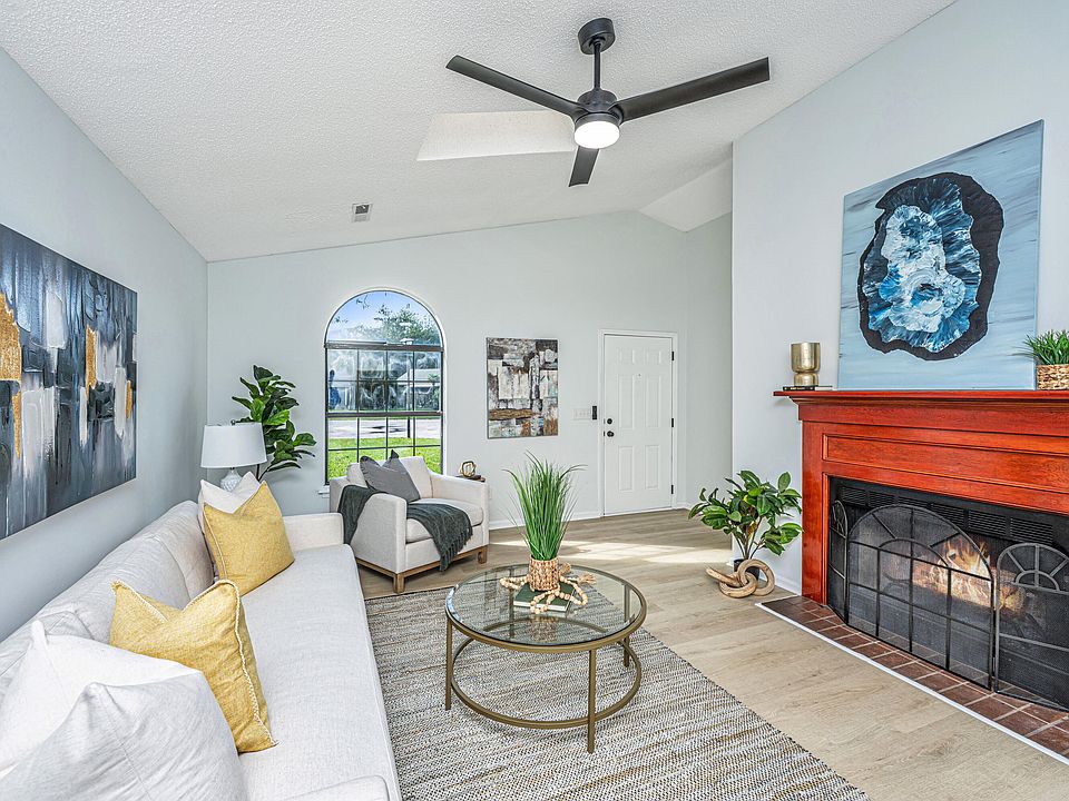 Wood burning fireplaceNew granite countertopsStainless steel appliancesVaulted ceilings