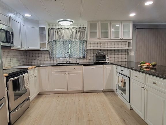 Located in Gulfstream Harbor, an Active 55+ Community in Orlando, Florida. This 1300+ square foot home has 2 bedrooms and 2 full baths. Flooring throughout home consists mostly of laminate and luxury vinyl with the exception of the guest bedroom which has carpet. The Primary bedroom has an en suite full bath with double vanity sinks and walk in shower. The 2nd full bathroom has another walk in shower. The home has 2 designated parking areas allowing for 3+ vehicles. The Extra Large Storage Shed has 2 entrances/exits and window a/c unit too. The side lanai has indoor/outdoor carpet and adds to the home an extra entertaining area for family and friends. The fully renovated kitchen has 2 ovens to allow for added cooking areas for holidays or events when needed. The washer and dryer are also included. The kitchen has solid surfaces and storage galore! Call to see this home today before it is gone!