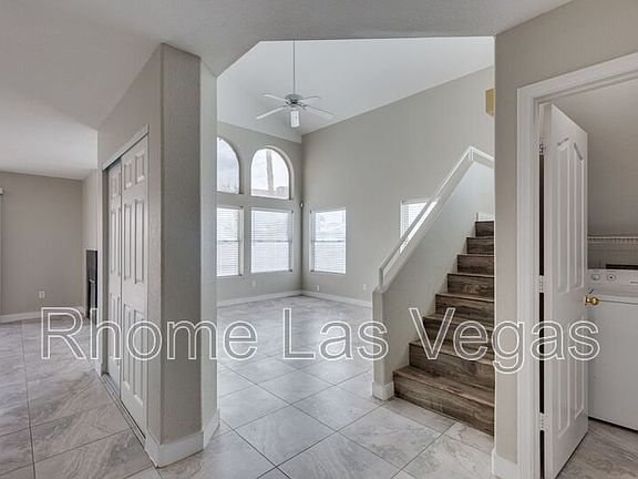 Great 3 bed 2.5 bath two story home near Summerlin! Close to shopping, dining freeway, parks, schools. Open & airy floorplan with vaulted ceilings. Upgraded throughout in cool neutral gray tones. Freshly painted throughout. Wood look flooring throughout, upgraded countertops. Living room has fireplace. Kitchen open to dining area with breakfast bar. Primary bedroom has walk in closet & balcony. Large back yard with covered patio. Two car attached garage.