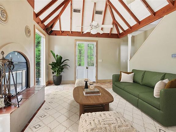 This beautiful estate property, in need of some TLC, offers tremendous potential to become a stunning showcase. The main home features numerous fine amenities, including skylights, beamed ceilings, Mexican tile and hardwood floors, Cypress doors, two fireplaces, and Pella-type windows. The guest home includes a bedroom, bathroom, kitchen, studio, and workshop. There's also a second, unfinished guest home, ideal for use as a large workshop. Additional highlights include a pool, pond, mature live oaks, and beautiful landscaping. Must be seen to be appreciated.