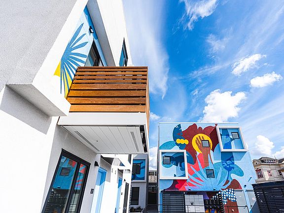 Discover ArtHaus Six, centrally located in Oakland and perfect for those who love to eat, experience, and explore. Find an endless array of colorful cuisine in every direction, and enjoy easy commutes just steps from Laney College and blocks from the Oakland Estuary and the Lake Merritt BART station. With a custom mural by Oakland based artist Favianna Rodriguez, live artfully in these these fully furnished, design forward studio apartments.