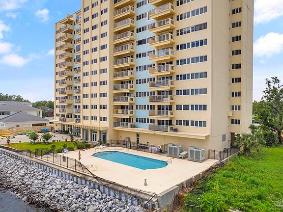 Enjoy expansive views of Pensacola Bay from this 3 bed, 2 bath condo in the Bayshore Condominium. The large bayfront pool and lovely common space offer unbeatable opportunities for relaxation and socializing. The third bedroom is currently being used as an office, providing flexible living options to suit your lifestyle. Conveniently located close to downtown Pensacola, the Pensacola Country Club, and the Pensacola Yacht Club, this home puts you near all the best the area has to offer. Enjoy added peace of mind with a 24-hour doorman and park in the covered garage. This unit is priced to sell and ready for someone to make it their own! No short-term rentals.