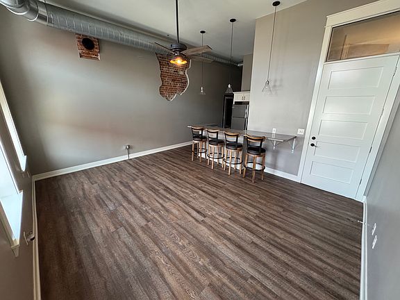 Recently renovated with a industrial modern theme. Exposed brick wall feature with premium vinyl planking throughout with carpet in the bedroom. Kitchen is equipped with peninsula with included barstools(4), pendant lighting, under cabinet/counter lighting and above cabinet lighting, all on separate switches. Tons of natural light throughout the apartment with a skylight above the bedroom and bedroom closet and transom window above the entry door. Extra tall west facing windows with top down bottom up blinds. Grinnell's Central Park is right across the street! Find everything you need downtown Grinnell. Grab some Pagliai's or Hometown Heroes, both just blocks away. Donuts and coffee from Grin City Bakery are less than 3 blocks away! Owner pay water. Renter pays electric.