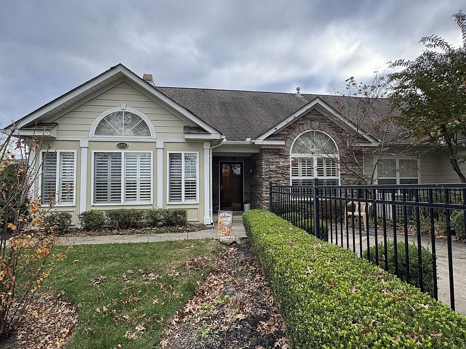 Charming One-Level Condo with Private Patio! Privacy in a condo community is very rare but this one has it. Spacious 2-Car Garage with a walk in storage closet & pull down attic access. This beautifully designed condo offers vaulted ceilings throughout and a bright, open layout. The versatile office space can easily function as an additional bedroom (no closet). The sunroom, flooded with natural light, is perfect for your plants, hobbies or relaxing with a good book. The home features a desirable split-bedroom layout for added privacy, and all appliances—including refrigerator, washer and dryer—are included, making this home truly move-in ready. Additional perks include a walk in closet in the primary suite, large double sink vanity. Ample green space, and a wonderful walking community with a pretty gazebo overlooking the nice pond. You also have access to a large pool and clubhouse. Plantation shutters throughout and absolutely no carpet in any rooms. Fantastic kitchen with gas stove, granite countertops and undercabinet lighting. Breakfast bar opens to dining and living area. Better hurry if you want privacy in a friendly condo community!!