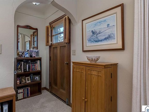 Two yard shedsDecorative fireplaceInviting arched front entry