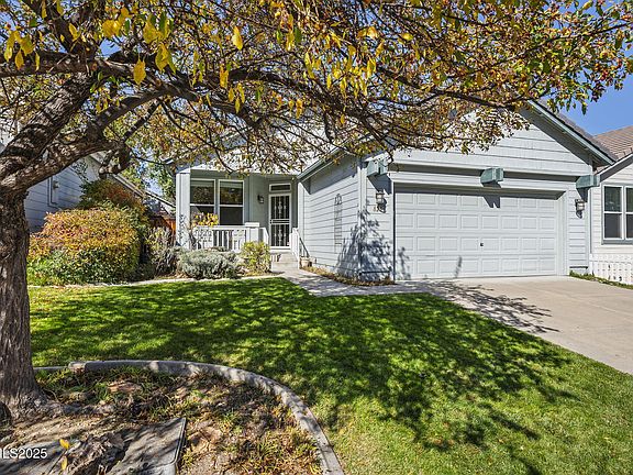 Welcome to this 2-bedroom, 2-bath single-story home in the highly desirable Caughlin Glen neighborhood — one of Reno's most picturesque and walkable communities.  Step inside to an open living room-to-kitchen floor plan with no steps, offering easy and accessible living for all. The home features a beautifully landscaped, low-maintenance backyard with a lovely patio, perfect for relaxing or entertaining, plus a front porch ideal for morning coffee while enjoying the seasonal beauty of fall colors. This home provides easy access to over 30 miles of neighborhood trails that connect to parks, open spaces, and the nearby river corridor, making it perfect for walking, jogging, or enjoying the outdoors. It's a quiet retreat in a convenient location, just minutes from shopping, restaurants, fitness studios, and more. Additional perks include a two-car garage and driveway parking, and the rare opportunity to own a home in Caughlin Glen at this price point. Experience the perfect blend of comfort, charm, and lifestyle in one of Reno's most desirable neighborhoods.