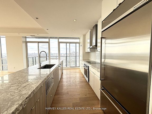 Stunningly upgraded, this 2-bedroom, 3-bathroom Penthouse suite in the prime of Yorkville offers the perfect blend of luxury & sophistication, complete W/ breathtaking panoramic city views. Situated in the exclusive Milan Condos W/ 3 units per floor secure access this spacious residence features impressive 10 ft ceilings, floor-to-ceiling windows, & high-end finishes throughout, including a sleek modern kitchen W/ quartz countertops & premium KitchenAid S/S appliances. The open-concept living space flows seamlessly, extending to a large private balcony with a gas BBQ hook-up, ideal for entertaining or relaxing. The bright primary bedroom boasts an amazing W/I closet & spa-like 4-piece ensuite bathroom. The generous 2nd bedroom includes balcony access, a large mirrored closet, & its own 4-piece ensuite bathroom. A versatile additional room with soaring windows can be used as a media room, office, or 3rd bedroom. Enjoy top-tier building amenities & an unparalleled location just steps from groceries, transit, gym/spa opportunities, fine dining, luxury shopping, & more! With immediate occupancy available, this rare rental opportunity delivers unbeatable convenience & upscale living at its finest. 2 Parking Spots & 1 Locker Included.