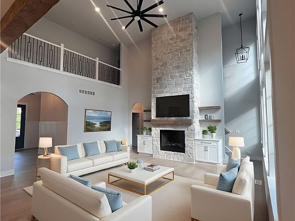 Three car garageTouch screen controlled fireplaceKitchenaid appliancesKraftmaid cabinetsWet barPolyaspartic floorPella impervia windows