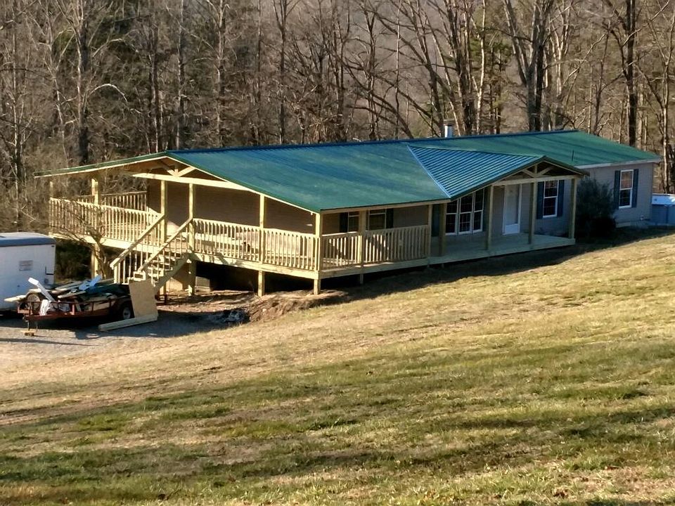 This is a beautiful 4 bedroom, 2 bath home located on 4.91 acres. This home has new flooring throughout and a new covered deck around the house as well as a new metal roof. There is a 20x34 finished insulated shed on the property with AC/heat. PLUS an storage building on the property. The land which has another location for another home is only minutes from the river.