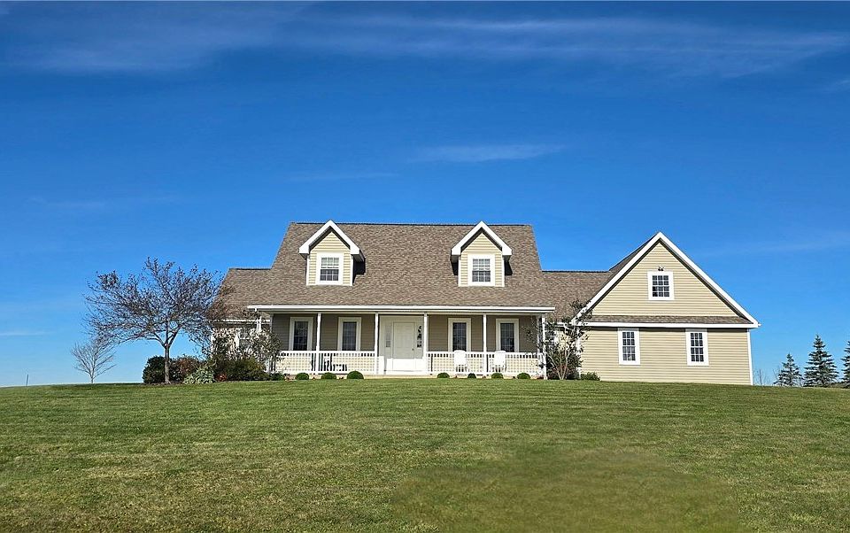 Own a home that feels like a vacation getaway, only 10 minutes from Corning and 15 minutes from Elmira! This custom-built, one-owner cape-cod sits on top of 35 acres and is “park-like” in appearance with a very private back yard, open fields, trails, wildlife, woods with a stream, gorgeous valley views, & a pond with a “beach area” for relaxing/wading. Its hilltop position keeps it in the morning sunshine above the valley fog, & it affords an almost 360-degree view of the sky for nighttime astronomy. The house is also a gem – beautifully maintained w an open-concept living room, dining room & kitchen, and an attached 3-car garage w a mudroom entrance leading directly into the kitchen. Designed for functionality, easy upkeep & one-level living. The 1st floor includes the primary bedroom, a second room that can be an office or bedroom, a third room that can be a den or an additional 5th bedroom, & a sound-insulated laundry room w shelves for clothing sorting. It has 6” outside walls & weather-star-rated windows. The oversized garage with space above reduces the need for a shed, & numerous closets provide plenty of storage. The covered front & back porches provide protection, & face east & west, enabling views of both sunrise & sunset. The unique bathrooms have separate toilets & showers & single sinks enable extra drawers. The primary bedroom en-suite also has a separate door into the main living area to serve as the powder room for guests, reducing the number of bathrooms to be maintained. A raised bed garden is ready for fresh vegetables to be grown.The basement has been intentionally left unfinished to serve as an inclement-weather recreation area.There’s even a sauna w a beach scene mural for a virtual getaway. Numerous new updates include:Pressure Tank Jun ’13; Roof Aug ’15; LG Washing machine Mar ’15 and Dryer Jul ’16; Submersible well pump Sept ’16; Bosch dishwasher Feb ’17; Owned Culligan water softener Mar ’17; Whirlpool Refrigerator Sept ’17; Kitchen floor refinished Oct ’17; Sauna Nov ’18; Bosch Combi Boiler- on-demand hot water Aug ’20; GE Microwave Nov ’20; Kitchen Aid Double Oven Range Aug ’22. This rare opportunity to own a unique oasis awaits you!