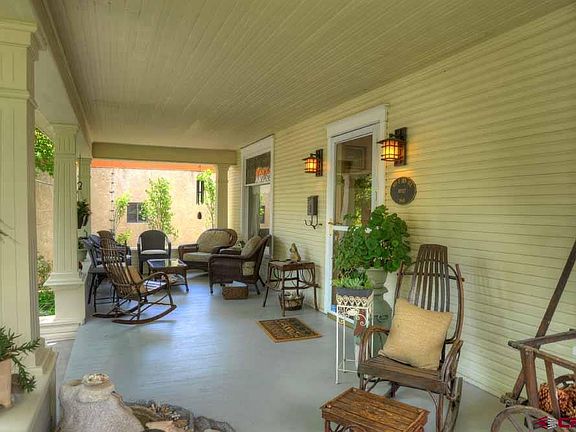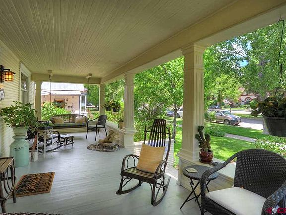 A rare opportunity to own one of historic Durangos premier character homes... Welcome to 825 East 3rd Avenue, now with brand new AC, furnace and water heater. For the discerning buyer who appreciates a prime lifestyle location, this 1908 American Four Square classic offers the unique detailing that only period homes offer, but with all the expensive updating expected done. Still showcasing many of the original features in the windows, pocket doors, trim work, shelving and flooring, this home offers distinctly high ceilings throughout, large windows and a surprisingly open floor plan with spacious rooms. If youve ever strolled the East 3rd Avenue Boulevard, you couldnt possibly have missed this porch: large enough to entertain a party but cozy enough for an intimate glass of wine after work, this classic Four Square covered porch spans the width of the house and is one of its grandest features. Youll be sold on this quintessential home the minute you walk on to it. MAIN LEVEL: The entry way heralds a time gone by, with a large foyer and central stair case elegantly crafted out of wood. To the right, youll find the main level master bedroom option, currently used as an office and enjoying beautiful views of the front yard. This potential en suite first floor bedroom has a completely updated three quarter bathroom. Off the foyer to the left is a beautiful sitting room, complete with almost 11 ceilings and original windows neatly framed in beautiful wood trim. Continuing on, youll pass a grand dining room graced with 11 ceilings, and open to its right, a hearth room with still more character... a fireplace, and the perfect balance of handcrafted wood beams, trim and molding inspire one to stop and slowly take in the details. Opening to the dining area is a newly remodeled kitchen with all the modern appointments youd expect in a home of this quality. Gorgeous custom cabinetry, solid stone surfaces and big windows create an inviting environment to indulge the culinary artist in you. A large pantry affords extra storage, and a breakfast nook overlooks the water fountain and back yard gardens through oversized corner windows. UPSTAIRS: The grand old staircase takes you to the 2nd floor, where an original bench seat welcomes you for a rest. There are three well sized bedrooms on this floor and a handsomely updated bathroom, complete with custom cabinetry, tile and a 2 sided glass shower. The 2 smaller bedrooms feature the preserved character traits youd hope for: dormered nooks and interesting historic detail that tell of a time long past but beautifully preserved. The largest bedroom, currently used as a master suite, has a large walk in closet and built ins, as well as direct access to the bathroom. Large windows bring mother nature and lovely light in to this east facing bedroom. LOWER LEVEL: The lowest level of the home, an easy to access basement that spans the footprint of the house, is not to be overlooked as it offers an extraordinary amount of full head height storage, comfortably houses all the mechanicals, features a cedar storage closet, and even has a climate appropriate storage nook for your wine and good chocolate. OUTSIDE: Off the kitchen, a covered patio area pleasingly overlooks a mature garden, with perennials, trees, and a sizable water feature. The perfect environment for a night cap or entertaining friends & family, the backyard also has privacy fencing. Detached with separate alley access, there is a ground level studio, complete with a 3/4 bath and used as a guest house & art studio. The large two car garage is a big bonus in busy downtown Durango, not only offering off street parking, but plenty of storage. Buyers seeking the Best of the Best, the most unique offering in historic Durango need look no further...discovering the variety of wonders and well preserved details of this very special home will take many visits. By appointment only.