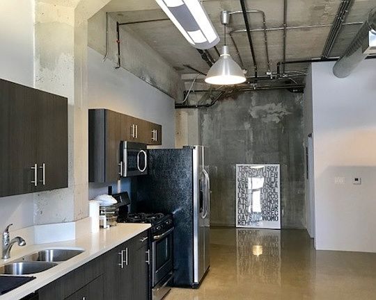 Bright live/work loft in the Arts Districts' Beacon Lofts building. Many original and raw industrial architectural elements include concrete floors, high ceilings, huge cement columns and natural light from expansive floor to ceiling windows, an open floor plan, sleek kitchen w/ Quartz countertops, stainless steel appliances and a full bath. A huge private patio extends the living space outdoors for those relaxing al fresco evenings. Beacon's roof top deck and spa / lounge with BBQ grill offers additional outdoor space and spectacular views. Beacon Lofts is located in the middle of the burgeoning Arts District. Walk blocks to galleries, boutiques, bars and coffee shops, as well as some of the best restaurants in the city.