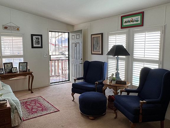 Cozy and Bright best describes this 3 bedroom 2 bath Manufactured Home. Complete with vaulted ceilings and spacious kitchen. Seller is the Original Owner of this approximate 1034 square foot home that was built 12/31/2005 and purchased in March of 2006. Spacious primary bedroom and secondary bedroom. Smaller bedroom currently being used as an office. This is a 55+ age restricted park.