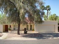 This southwestern beauty is loaded with charm.Lovely arches throughout with loads of ceramic tile.Built-in cabinets in the formal living room.The great room has a fireplace,new French doors to backyard & breakfast bar creating the perfect setting to entertain.Updated kitchen has new Corian countertops, includes all appliances & a pass-through window to the patio.The master suite is split with a sep. exit & walk-in closet.The master bath has a garden tub & double sinks.Roomy closets & storage.A spacious hallway leads to bedrooms & hall bath.The backyard has an extended covered patio & sparkling diving pool.Lovely desert landscaping makes this home carefree!