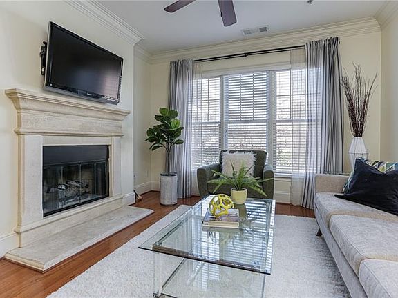 Spacious condo in Poncey-Highland / located 2 blocks from Ponce City Market & the Beltline. The open concept floorplan allows for lots of natural light. The private balcony offers a serene setting overlooking the pool. Other features: kitchen island w/ breakfast bar, SS appliances, living rm w/ gas fireplace, hardwoods, spacious master bdrm w/ walk in closet, 2nd bdrm or use as office, double vanities, separate soaking tub + huge walk in shower, BONUS: deeded parking & storage unit. Community features: gated complex, elevator, pool, dog parks + lots of guest parking!