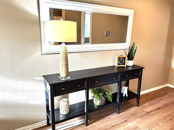 Immaculate single-level home built in 2014. Large corner lot near park. Spacious open plan with 3rd bedrm or den. Kitchen features granite, tile backsplash, SS appliances, pantry, peninsula with bar. Great room w/ gas fireplace. Primary suite with walk in closet, double sinks. New flooring throughout. Fully fenced backyard, raised garden beds, covered extended patio plumbed for hot tub, 8x10 garden shed. AC, RV ready with cleanout.