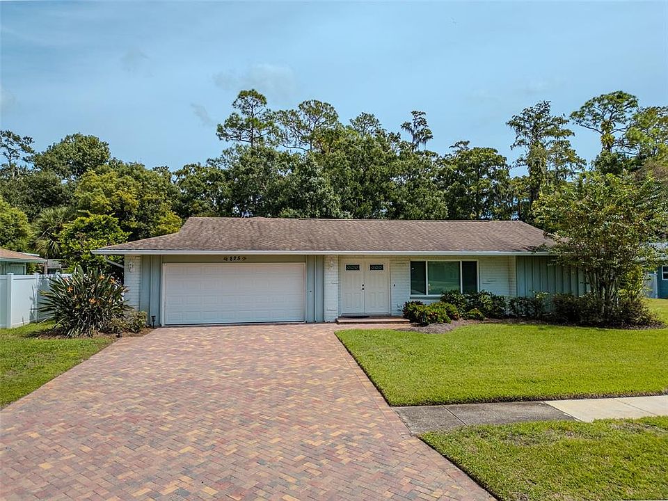 One or more photo(s) has been virtually staged. This beautifully remodeled home has been thoughtfully upgraded from top to bottom starting with New South hurricane-rated windows and doors —just move in and start enjoying your new space. Step through the new front double doors into a bright and spacious living room featuring gleaming engineered hardwood floors and an abundance of natural light. At the heart of the home lies a well-appointed galley kitchen complete with granite countertops, stainless steel dishwasher 2025, stainless steel refrigerator, deep freezer, stainless steel convection oven, cooktop with JennAir, and a layout perfect for entertaining. The flexible split floor plan includes a cozy bonus room at the rear of the home, showcasing an electric fireplace and access to a newly renovated back lanai. With its classic wood ceiling, the lanai overlooks a fenced backyard with a paver patio and a tranquil, private wooded view. The master suite is a true retreat with a walk-in closet and a beautifully remodeled bathroom, including a walk-in shower & new toilet installed in 2024. Two additional bedrooms offer generous space, ideal for guests or a home office. Additional upgrades enhance the home’s value and comfort including a newer tankless hot water heater, updated electric panel, and a whole-house surge protector—plus one dedicated for the A/C unit. The roof and A/C were both replaced in 2015, and the flat roof and lanai roof have also been recently updated. The property also features a newer well pump with updated electrical components and new gutters. Sliding glass doors were replaced in 2018, and the entire interior received fresh paint and retexturing in 2023. With a really low HOA ($42/mo.) this home is ideally located near a wide range of shopping and dining options, the home also enjoys proximity to the scenic John Chestnut Sr. Park on Lake Tarpon—with convenient access right from the 55+ community.