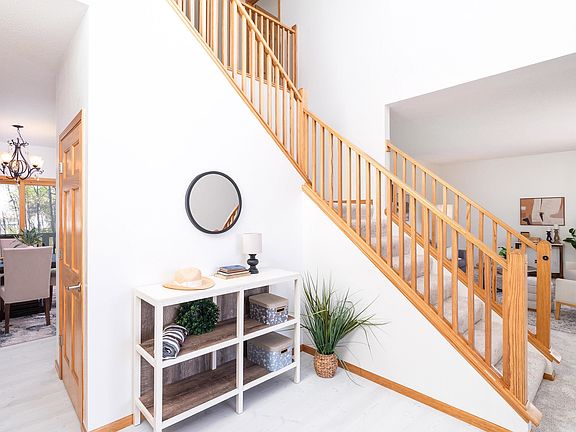 Nestled at the end of a peaceful cul-de-sac in a neighborhood of newer homes, this updated & well maintained 4-bedroom, 4-bath traditional home sits on an oversized lot and offers space, style, and functionality. Step into a unique and inviting floor plan featuring a welcoming entryway hall, plus, a spacious mudroom just off the attached garage—perfect for busy households. Designed for convenience, the main level offers a private primary suite and a laundry room for ideal one-level living. The heart of the home is the open kitchen and dining area, providing you with a charming breakfast bar and stunning custom hickory cabinets—perfect for everyday meals and entertaining. Upstairs, two oversized bedrooms share a full bath and are complemented by a flexible loft space, ideal as a rec room, playroom, or home office. Vaulted ceilings in the upper bedrooms add a touch of spacious elegance. Fantastic additional sq. footage includes the completely finished walkout lower level! Enjoy brand-new flooring throughout, a second party or entertainment area with a kitchenette, a full bath, and multiple flexible spaces—including an oversized bedroom, a home office (or walk-in closet), and a dedicated exercise area. Nothing to do but move in with fresh paint throughout, new flooring on all levels, New sliding doors in the lower level, Maintenace free siding, six panel doors, an attached garage AND a front porch to swing on! This home has it all—modern updates, flexible living spaces, and a location that offers both privacy and community.
