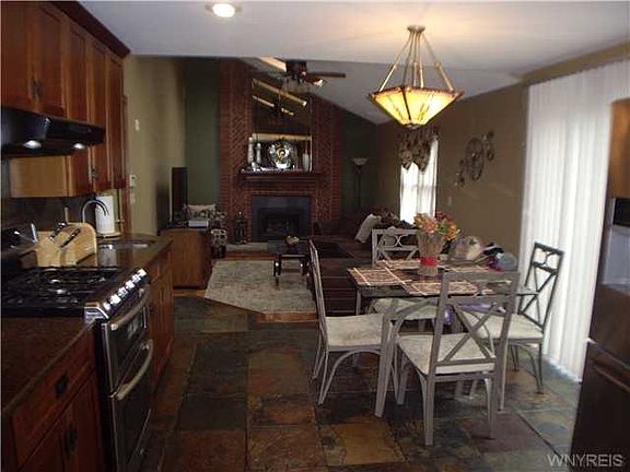 Welcome to this stately center entrance colonial with open 2 story foyer and beautiful slate flooring. Gourmet kitchen with cherry cabinets, radiant heated floors, quartz counters and sliding doors to the patio. Recessed family room offers new gas fireplace and vaulted ceiling. There is an extra room on the first floor could be your office or a first floor bedroom. Both bathrooms have been updated with ceramic tile and vanity. Basement has been studded and is ready for finishing. Other features include updated plumbing, 6 panel doors, tank less hot water tank and sump pump. Call today