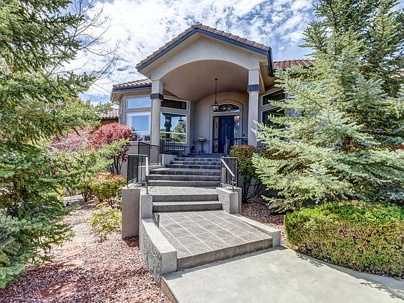 Elegant home in an established NO HOA neighborhood is both close to Prescott National Forest and just minutes from our famous downtown. This impressive home is in outstanding condition! With a level entry from the garage into a split floor plan, it was also built for easy living! Gorgeous entrance leads guests into a sumptuous foyer and living rm featuring 12' ceilings, gas FP, Up just a few steps is a cozy family rm off the large and richly appointed kitchen, This level includes Mtn. views, gorgeous Travertine tile, sunny breakfast nook, huge 2nd pantry, laundry rm, 1/2 BA, 2 large bedrooms & 1 full bath. The owner's suite is GRAND with double doors to a private deck, a dbl sided gas fireplace, 2 person jacuzzi tub and more. Lower level w/separate entrance and 3/4 bath. Lg fenced lot!