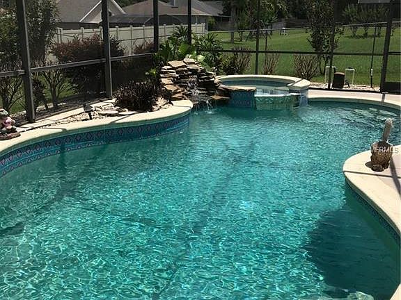 Beautiful 3/2 Pool home with no Home Owners Association!!! Do not miss out on this beautiful home which features three bedrooms, two bathrooms, formal living and dining rooms, family room, interior laundry and spacious kitchen with dinette. The entrance has lush landscaping which leads to the double leaded glass doors. As you enter the home the formal living room will be the first thing you see and to the left of the entry way is the formal dining room. Both of these room connect to the kitchen for convenience. The kitchen has several work stations, a closet pantry, overhead built in shelves, granite counters and a breakfast bar. This room shares space with the dinette and family room. The family room features two large windows, sliders leading out to the lanai and a fabulous stone wood burning fireplace. There are two bedrooms and a guest bath that are located off of this room. The master suite is located on the opposite side of the house, this room has a large double window for plenty of natural light and overhead plant shelves. The master bath features overhead shelving a double sink, garden tub, free standing shower, linen closet and a walk in closet. The rear of the home has a fantastic pool, spa and waterfall all of this with a large deck area that is all screened enclosed. The rear fenced yard features lush landscaping, storage shed and fire pit area. Roof 3 yrs old, AC & Gas furnace with Nest thermostat with blue tooth accessibility 2 yrs old. Hot water heater 2011, drain field 2012.