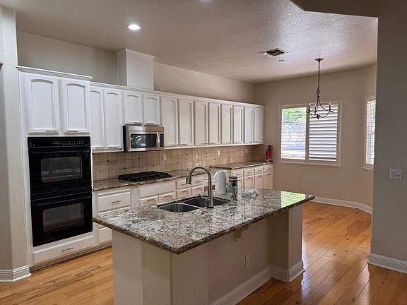 Beautiful updated 4 bedroom open living concept home with remodeled kitchen, bathrooms and laundry room. Stunning 20' vaulted ceilings! Kitchen features double wall ovens, large walk in pantry, 5 burner gas stove top and lots of cabinets throughout! Primary bedroom with walk in master bedroom closet with built in organizers.