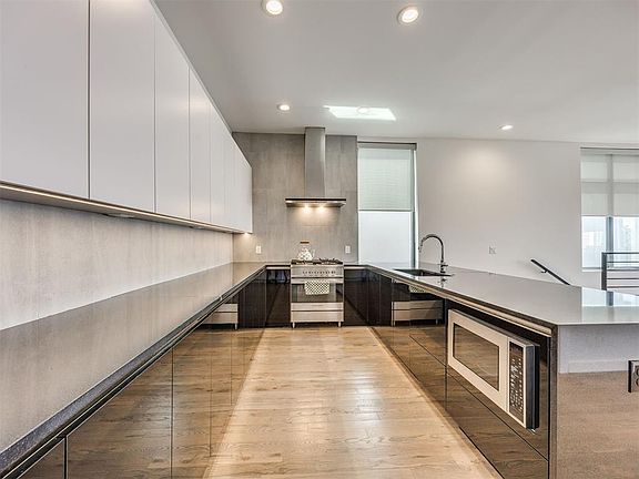 The second floor is a showstopper, with floor-to-ceiling windows, Hunter Douglas motorized shades, and an open-concept living space leading to a private balcony. The chef’s dream kitchen is fully equipped with a Sub-Zero built-in refrigerator, 3CM black quartz countertops, a Fisher & Paykel 4-burner industrial-grade gas range, a commercial-grade dual drawer dishwasher, and sleek custom cabinetry—ideal for everyday luxury and elevated entertaining.