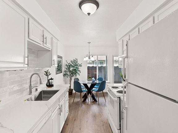 Welcome Home! This charming lower-level 2-bedroom, 1-bath condo in the desirable Oak Grove Villas offers the perfect blend of comfort and convenience. Step inside to discover brand-new waterproof laminate flooring that flows seamlessly throughout, complemented by fresh interior paint that creates a bright and inviting atmosphere. The recently updated kitchen features stunning quartz countertops, a gleaming glazed tile backsplash, and a sleek undermount sink with a modern faucet perfect for culinary enthusiasts. Enjoy the benefits of a well-kept community with a sparkling pool and a clubhouse for gatherings. The home also features ample storage and a private fenced patio, ideal for relaxing or entertaining. Located just minutes from scenic parks, John Muir Medical Center, Kaiser medical offices, and an array of shopping options, including Trader Joes. With easy access to major freeways and Pleasant Hill BART, commuting is a breeze. Plus, water and garbage are conveniently covered in the HOA dues. Hookups for washer/dryer can be installed in the unit with the approval from HOA. Don't miss this move-in-ready gem - take a tour today!