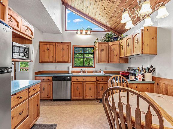 Charming home with lots of character.Located off of Columbia Heights.Minutes from town,shopping, and restaurants.Coziness of a cabin with a wood stove and vaulted ceilings in the kitchen which opens up to great natural lighting.A deck off the kitchen over looking trees is perfect for morning coffee or evening entertaining!Upstairs has an open concept office nook on one side and two bedrooms on the other. Half unfinished basement with access underneath the deck has storage as wellas above garage.